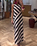 Contrast stripe print sleeveless slit dress