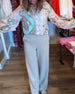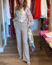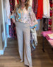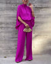 SPECIFICATIONS Style: Chic, Elegant Category: Sets Material: Cotton Blends Pattern Type: Solid Color Neckline: High Neck Sleeve Type: Bat sleeve Sleeve Length: Half Sleeve Pants Type: Wide Leg Pants Length: Long Waist Type: High Waist Fit Type: Regular Season: Spring, Summer Occasion: Daily, Work Package Includes: 1 x Blouse, 1 x Pants SIZ...