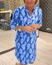 SPECIFICATIONS Style: Casual Material: Cotton Blends Dress Type: Shift dress Dress Length: Knee Length Neckline: V neck_V Pattern Type: Print Sleeve Type: Regular sleeve Sleeve Length: 3/4 Sleeve Fit Type: Regular Season: Spring, Summer Occasion: Daily, Work Package Includes: 1 x Dress SIZE TABLE Size Bust length CM INCH CM INC...