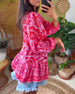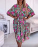 SPECIFICATIONS Style: Vacation, Elegant Material: Cotton Blends Dress Type: A-Line Dress Length: Knee Length Neckline: V neck_V Pattern Type: Floral Sleeve Type: Bat sleeve Sleeve Length: Half Sleeve Details: Drawstring Fit Type: Regular Season: Spring, Summer, Fall Occasion: Daily, Vacation Package Includes: 1 x Dress SIZE TABLE Si...