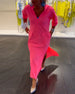 SPECIFICATIONS Style: Elegant Material: Cotton Blends Dress Type: Shift dress Dress Length: Midi Neckline: V neck_V Pattern Type: Solid Color Sleeve Type: Regular sleeve Sleeve Length: 3/4 Sleeve Details: Pocket, Slit Fit Type: Regular Season: Spring, Summer, Fall Occasion: Daily Package Includes: 1 x Dress SIZE TABLE Size B...
