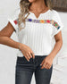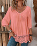 SPECIFICATIONS Top Type: Blouses Style: Casual Material: Cotton Blends Occasion: Daily Neckline: V neck_V Pattern Type: Solid Color Sleeve Type: Slit Sleeves Sleeve Length: Half Sleeve Fit Type: Regular Season: Summer Details: Patchwork, Cut Out Package Includes: 1 x Blouse SIZE TABLE Size Bust Length CM INCH CM INCH S 95 37....