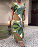 SPECIFICATIONS Style: Casual, Vacation Material: Cotton Blends Dress Type: Shift dress Dress Length: Maxi Neckline: V neck_V Pattern Type: Leaves, Print Sleeve Type: Dropped shoulder Sleeve Length: Short Sleeve Details: Slit Fit Type: Regular Season: Summer Occasion: Daily, Vacation Package Includes: 1 x Dress SIZE TABLE Size Bus...