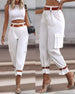 SPECIFICATIONS Style: Casual Material: Cotton Blends Pattern Type: Solid Color Pants Type: Cargo Pants Pants Length: Long Waist Type: High Waist Fit Type: Regular Season: Spring, Summer, Fall Details: Pocket Occasion: Daily Package Includes: 1 x Pants SIZE TABLE Size Hip Waist Length CM INCH CM INCH CM INCH S 120 47.24 67 26.38 ...