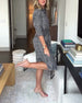 SPECIFICATIONS Style: Casual Material: Cotton Blends Dress Type: Shift dress Dress Length: Knee Length Neckline: V neck_V Pattern Type: Solid Color Sleeve Type: Lantern Sleeve Sleeve Length: Nine Points Sleeve Details: Buttons Fit Type: Regular Season: Spring, Summer Occasion: Daily Package Includes: 1 x Dress SIZE TABLE Size Bus...