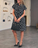 SPECIFICATIONS Style: Casual, Business Material: Cotton Blends Dress Type: Shift dress Dress Length: Knee Length Neckline: Lapel Pattern Type: Geometric Print Sleeve Type: Regular sleeve Sleeve Length: Short Sleeve Fit Type: Regular Season: Spring, Summer, Fall Occasion: Daily, Work Package Includes: 1 x Dress SIZE TABLE Size Bus...