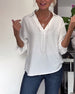 SPECIFICATIONS Top Type: Blouses Style: Casual Material: Cotton Blends Occasion: Daily Neckline: V neck_V Pattern Type: Solid Color Sleeve Type: Regular sleeve Sleeve Length: 3/4 Sleeve Fit Type: Regular Season: Spring, Summer Details: Buttons Package Includes: 1 x Blouse SIZE TABLE Size Bust Length CM INCH CM INCH ...