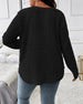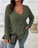 SPECIFICATIONS Top Type: Tops Style: Casual Material: 6% Spandex, 94% Polyester Occasion: Daily Neckline: V neck_V Pattern Type: Color Block Sleeve Type: Dropped shoulder Sleeve Length: Long Sleeve Fit Type: Regular Season: Spring, Fall Package Includes: 1 x Top SIZE TABLE Size Bust Length CM INCH CM INCH S 95 37.40 68 26.7...