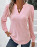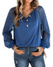 SPECIFICATIONS Top Type: Tops Style: Casual Material: Cotton Blends Occasion: Daily Neckline: V neck_V Pattern Type: Solid Color Sleeve Type: Regular sleeve Sleeve Length: Long Sleeve Fit Type: Regular Season: Spring, Fall Details: Buttons, Cut Out, Lace Package Includes: 1 x Top SIZE TABLENOTE Please follow the size chart strictly to select t...