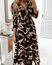 SPECIFICATIONS Style: Casual Material: 35% Spandex, 65% Polyester Dress Type: A-Line Dress Length: Maxi Neckline: V neck_V Pattern Type: Print Sleeve Type: Regular sleeve Sleeve Length: Long Sleeve Fit Type: Regular Season: Spring, Fall Occasion: Daily Package Includes: 1 x Dress (With Belt) SIZE TABLE Size Bust Length CM INC...