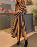 SPECIFICATIONS Style: Casual Material: Cotton Blends Dress Length: Midi Neckline: Round Neck Pattern Type: Striped Sleeve Type: Regular sleeve Sleeve Length: 3/4 Sleeve Fit Type: Regular Season: Spring, Fall Occasion: Daily Package Includes: 1 x Dress SIZE TABLE Size Bust Length CM INCH CM INCH S 95 37 120 47 M 100 39 121.5 48 ...