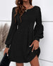 SPECIFICATIONS Style: Casual Material: Cotton Blends Dress Type: A-Line Dress Length: Midi Neckline: Round Neck Pattern Type: Solid Color Sleeve Type: Regular sleeve Sleeve Length: Long Sleeve Details: Patchwork, Ruffle Fit Type: Regular Season: Spring, Fall, Winter Occasion: Daily Package Includes: 1 x Dress SIZE TABLE Size Bust Length...