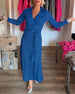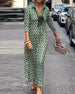 SPECIFICATIONS Style: Casual, Business Material: Cotton Blends Dress Type: T-shirt Dress Length: Maxi Neckline: V neck_V Pattern Type: Print Sleeve Type: Regular sleeve Sleeve Length: Long Sleeve Details: Buttons Fit Type: Regular Season: Spring, Fall, Winter Occasion: Daily, Work Package Includes: 1 x Dress SIZE TABLE Size Bus...