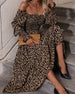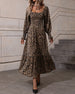 SPECIFICATIONS Style: Casual, Vacation Material: Cotton Blends Dress Type: A-Line Dress Length: Maxi Neckline: Square Neck Pattern Type: Print Sleeve Type: Ruffle Sleeve Sleeve Length: Long Sleeve Details: Shirred Fit Type: Regular Season: Spring, Fall Occasion: Daily, Vacation Package Includes: 1 x Dress SIZE TABLE Size Bust Length C...