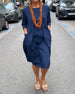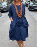 SPECIFICATIONS Style: Casual Material: Cotton Blends Dress Type: A-Line Dress Length: Knee Length Neckline: Round Neck Pattern Type: Solid Color Sleeve Type: Regular sleeve Sleeve Length: 3/4 Sleeve Fit Type: Regular Season: Spring, Fall Occasion: Daily Package Includes: 1 x Dress SIZE TABLE Size Bust Length CM INCH CM INCH S 95 37....
