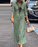 SPECIFICATIONS Style: Casual Material: Polyester Dress Type: Shirt Dress Length: Knee Length Neckline: Shirt Collar Pattern Type: Letter Sleeve Type: Regular sleeve Sleeve Length: 3/4 Sleeve Details: Buttons Fit Type: Regular Season: Spring, Summer, Fall Occasion: Daily Package Includes: 1 x Dress SIZE TABLE Size Bust Sle...