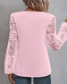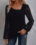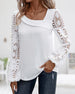 SPECIFICATIONS Top Type: Blouses Style: Casual, Elegant Material: 94% polyester, 6% spandex Occasion: Daily Pattern Type: Solid Color Sleeve Type: Regular sleeve Sleeve Length: Long Sleeve Fit Type: Regular Season: Spring, Fall, Winter Details: Hollow Out, Lace Package Includes: 1 x Blouse SIZE TABLE Size Bust Length Sleeve Shoulder ...