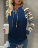 SPECIFICATIONS Top Type: Sweatshirts Style: Casual Material: Cotton Blends Occasion: Daily, Street Neckline: V neck_V Pattern Type: Color Block Sleeve Type: Regular sleeve Sleeve Length: Long Sleeve Fit Type: Regular Season: Spring, Fall, Winter Details: Bandage Package Includes: 1 x Sweatshirt SIZE TABLE Size Bust Length CM INCH CM I...
