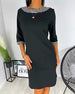 SPECIFICATIONS Style: Casual Material: 94% Polyester, 6% Spandex Dress Type: Shift dress Dress Length: Knee Length Neckline: Round Neck Pattern Type: Color Block Sleeve Type: Regular sleeve Sleeve Length: 3/4 Sleeve Fit Type: Regular Season: Spring, Fall Occasion: Daily Package Includes: 1 x Dress SIZE TABLE Size Bust Length CM INCH ...