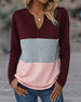 SPECIFICATIONS Top Type: Tops Style: Casual Material: 100% Polyester Occasion: Daily, Vacation Neckline: V neck_V Pattern Type: Color Block Sleeve Type: Regular sleeve Sleeve Length: Long Sleeve Fit Type: Regular Season: Spring, Fall Package Includes: 1 x Top SIZE TABLE Size Bust Length CM INCH CM INCH S 95 37.4 65 25.59 ...