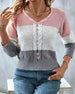 SPECIFICATIONS Category: Pullovers Style: Casual Material: Acrylic, Spandex, Polyester Neckline: V neck_V Pattern Type: Color Block Sleeve Type: Regular sleeve Sleeve Length: Long Sleeve Details: Buttons Fit Type: Regular Occasion: Daily Season: Spring, Fall, Winter Package Includes: 1 x Pullover SIZE TABLE Size Waist Length CM INCH...