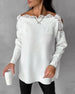 SPECIFICATIONS Category: Pullovers Style: Elegant Material: Acrylic, Spandex, Polyester Neckline: Cold Shoulder Pattern Type: Solid color Sleeve Type: Cold Shoulder Sleeve Length: Long Sleeve Details: Ribbed, Patchwork, Lace Fit Type: Loose Occasion: Daily Season: Spring, Fall, Winter Package Includes: 1 x Pullover SIZE TABLE Si...