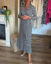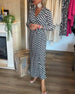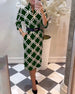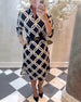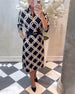 SPECIFICATIONS Style: Elegant Material: 95% polyester, 5% spandex Dress Type: A-Line Dress Length: Midi Neckline: Lapel Pattern Type: Geometric Print Sleeve Type: Regular sleeve Sleeve Length: Long Sleeve Details: Pocket, Buttons Fit Type: Regular Season: Spring, Fall, Winter Occasion: Daily Package Includes: 1 x Dress SIZE TABLE Size B...