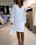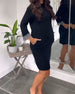 SPECIFICATIONS Style: Elegant Material: Cotton Blends Dress Type: Shift dress Dress Length: Knee Length Neckline: V neck_V Pattern Type: Solid Color Sleeve Type: Regular sleeve Sleeve Length: Long Sleeve Fit Type: Regular Season: Spring, Fall, Winter Occasion: Daily Package Includes: 1 x Dress SIZE TABLE Size Bust Length CM I...