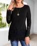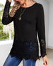 SPECIFICATIONS Top Type: Blouses Style: Elegant Material: Cotton Blends, Lace Occasion: Daily, Vacation Neckline: Round Neck Pattern Type: Solid Color Sleeve Type: Regular sleeve Sleeve Length: Long Sleeve Fit Type: Regular Season: Spring, Fall, Winter Details: Lace Package Includes: 1 x Blouse SIZE TABLE Size Bust Length CM INCH CM INC...