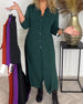 SPECIFICATIONS Style: Casual, Business Material: Cotton Blends Dress Type: Shirt Dress Length: Maxi Neckline: Lapel Pattern Type: Solid Color Sleeve Type: Regular sleeve Sleeve Length: Long Sleeve Details: Buttons Fit Type: Regular Season: Spring, Fall, Winter Occasion: Daily, Work Package Includes: 1 x Dress SIZE TABLE Size Bu...