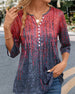 SPECIFICATIONS Top Type: Blouses Style: Casual Material: Cotton Blends Occasion: Daily Neckline: Round Neck Pattern Type: Gradient Sleeve Type: Regular sleeve Sleeve Length: 3/4 Sleeve Fit Type: Regular Season: Spring, Summer, Fall Details: Buttons Package Includes: 1 x Blouse SIZE TABLE Size Bust Length CM INCH CM INCH S 9...
