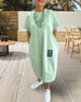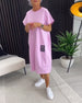 SPECIFICATIONS Style: Casual Material: Cotton Blends Dress Type: Shift dress Dress Length: Midi Neckline: Round Neck Pattern Type: Letter Sleeve Type: Regular sleeve Sleeve Length: Short Sleeve Details: Pocket Fit Type: Regular Season: Spring,Summer Occasion: Daily Package Includes: 1 x Dress SIZE TABLE Size Bust Length CM INCH CM ...
