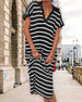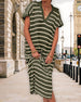 SPECIFICATIONS Style: Casual Material: Cotton,Polyester Dress Type: Shift dress Dress Length: Midi Neckline: Lapel Pattern Type: Striped Sleeve Type: Regular sleeve Sleeve Length: Short Sleeve Details: Slit Fit Type: Regular Season: Spring,Summer Occasion: Daily Package Includes: 1 x Dress SIZE TABLE Size Shoulder Bust Length CM I...