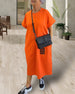 SPECIFICATIONS Style: Casual Material: Cotton Blends Dress Type: T-shirt Dress Length: Midi Neckline: Round Neck Pattern Type: Solid Color Sleeve Type: Regular sleeve Sleeve Length: Short Sleeve Details: Irregular,Fake two pieces Fit Type: Regular Season: Spring,Summer Occasion: Daily Package Includes: 1 x Dress SIZE TABLE Size Bust ...