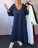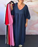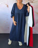 SPECIFICATIONS Style: Casual Material: 100% Cotton Dress Type: A-Line Dress Length: Maxi Neckline: V neck_V Pattern Type: Solid Color Sleeve Type: Lantern Sleeve Sleeve Length: 3/4 Sleeve Fit Type: Regular Season: Spring,Summer Occasion: Daily Package Includes: 1 x Dress SIZE TABLE Size Bust Length Sleeves Shoulder CM INCH CM I...