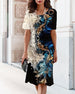 SPECIFICATIONS Style: Casual Material: Cotton Blends Dress Type: Shift dress Dress Length: Midi Neckline: V neck_V Pattern Type: Print Sleeve Type: Regular sleeve Sleeve Length: 3/4 Sleeve Details: Knot Fit Type: Regular Season: Spring,Summer Occasion: Daily Package Includes: 1 x Dress SIZE TABLE Size Bust Length CM INCH CM INCH S 9...