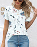 SPECIFICATIONS Top Type: Blouses Style: Casual Material: Cotton Blends Occasion: Daily Neckline: Round Neck Pattern Type: Print Sleeve Type: Regular sleeve Sleeve Length: Short Sleeve Fit Type: Regular Season: Spring,Summer Details: Shirred Package Includes: 1 x Blouse SIZE TABLE Size Bust Length CM INCH CM INCH S 97 38.19 68 26....