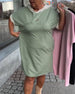 SPECIFICATIONS Style: Casual Material: Cotton Blends Dress Type: T-shirt Dress Length: Midi Neckline: Round Neck Pattern Type: Solid Color Sleeve Type: Regular sleeve Sleeve Length: Half Sleeve Details: Lace Fit Type: Regular Season: Spring,Summer Occasion: Daily Package Includes: 1 x Dress SIZE TABLE Size Bust Length CM INCH CM IN...