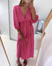 SPECIFICATIONS Style: Casual Material: Cotton Blends Dress Type: A-Line Dress Length: Maxi Neckline: V neck_V Pattern Type: Striped Sleeve Type: Regular sleeve Sleeve Length: 3/4 Sleeve Details: Lace Up Fit Type: Regular Season: Spring,Summer Occasion: Daily Package Includes: 1 x Dress SIZE TABLE Size Bust Length CM INCH CM INCH S 97 ...