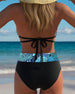 Sleeveless Printed Contrast One-Piece Swimsuit