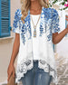 SPECIFICATIONS Top Type: Blouses Style: Casual Material: Cotton Blends Occasion: Daily Neckline: Round Neck Pattern Type: Print Sleeve Type: Regular sleeve Sleeve Length: Short Sleeve Fit Type: Regular Season: Spring,Summer Details: Irregular,Fake two pieces Package Includes: 1 x Blouse SIZE TABLE Size Bust Length CM INCH CM INCH ...