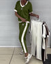 SPECIFICATIONS Style: Casual Top Type: Blouses Category: Sets Material: Cotton Blends Pattern Type: Color Block Neckline: V neck_V Sleeve Type: Regular sleeve Sleeve Length: Short Sleeve Pants Type: Conventional Pants Length: Long Waist Type: Mid Waist Fit Type: Regular Season: Spring,Summer Occasion: Daily Package Includes: 1 x Blouse, 1 x Pa...