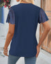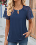 SPECIFICATIONS Top Type: T-shirt Style: Casual Material: Cotton Blends Occasion: Daily Neckline: Round Neck Pattern Type: Solid Color Sleeve Type: Regular sleeve Sleeve Length: Short Sleeve Fit Type: Regular Season: Spring,Summer Details: Patchwork,Hollow Out,Lace Package Includes: 1 x T-shirt SIZE TABLE Size Bust Length CM INCH C...