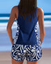 Casual Pocket V-Neck Printed Two-Piece Swimsuit