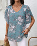 SPECIFICATIONS Top Type: Blouses Style: Casual Material: Cotton Blends Occasion: Daily Neckline: V neck_V Pattern Type: Print Sleeve Type: Petal Sleeve Sleeve Length: Half Sleeve Fit Type: Regular Season: Spring,Summer Package Includes: 1 x Blouse SIZE TABLE Size Bust Length CM INCH CM INCH S 97 38.19 65 25.59 M 101 39.76 66.5...