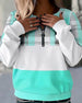 SPECIFICATIONS Top Type: Sweatshirts Style: Casual Material: Cotton Blends Occasion: Daily Neckline: V neck_V Pattern Type: Color Block Sleeve Type: Regular sleeve Sleeve Length: Long Sleeve Fit Type: Regular Season: Spring,Summer,Fall Details: Zipper Package Includes: 1 x Sweatshirt SIZE TABLE Size Bust Length CM INCH CM INCH S...