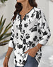 SPECIFICATIONS Top Type: Blouses Style: Casual Material: Cotton Blends Occasion: Daily Neckline: Lapel Pattern Type: Print Sleeve Type: Bat sleeve Sleeve Length: 3/4 Sleeve Fit Type: Regular Season: Spring,Summer Details: Buckle,Irregular Package Includes: 1 x Blouse SIZE TABLE Size Bust Length CM INCH CM INCH S 97 38.19 68 26.77...
