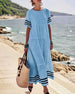 SPECIFICATIONS Style: Casual Material: Cotton Blends Dress Type: Shift dress Dress Length: Midi Neckline: Round Neck Pattern Type: Color Block Sleeve Type: Regular sleeve Sleeve Length: Short Sleeve Fit Type: Regular Season: Spring,Summer Occasion: Daily Package Includes: 1 x Dress SIZE TABLE Size Bust Length CM INCH CM INCH S 97 ...
