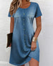 SPECIFICATIONS Style: Casual Material: Cotton Blends Dress Type: Shift dress Dress Length: Midi Neckline: Round Neck Pattern Type: Print Sleeve Type: Regular sleeve Sleeve Length: Short Sleeve Details: Pocket Fit Type: Regular Season: Spring,Summer Occasion: Daily Package Includes: 1 x Dress SIZE TABLE Size Bust Length CM INCH CM IN...