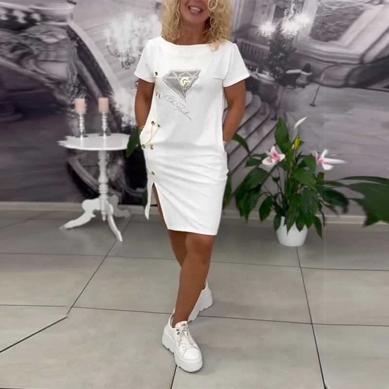 SPECIFICATIONS Style: Casual Material: Cotton Blends Dress Type: Shift dress Dress Length: Above-knee Neckline: Round Neck Pattern Type: Print Sleeve Type: Regular sleeve Sleeve Length: Short Sleeve Details: Pocket,Slit Fit Type: Regular Season: Spring,Summer Occasion: Daily Package Includes: 1 x Dress SIZE TABLE Size Bust Length CM INC...